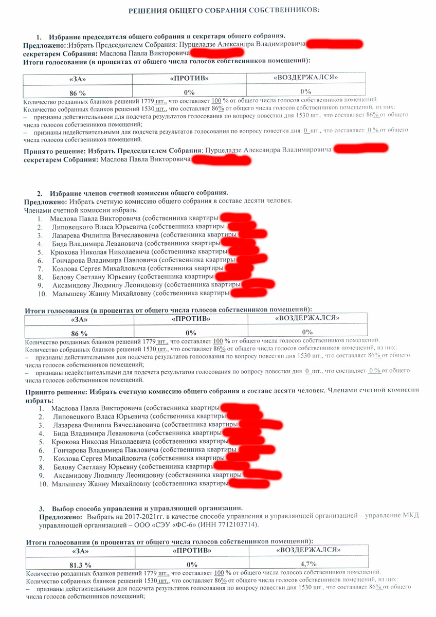 По информации полученной в полиции лица которые указаны в протоколе этого собрания также отрицают участие в этом собрании, также полиция связывалась с юристом управляющей компании и тот тоже отрицал проведение этого собрания.