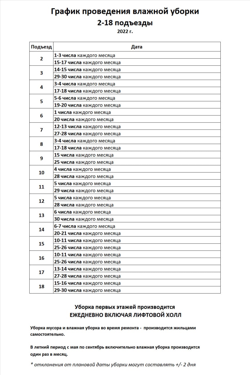 Re: Уборка подъездов и этажей