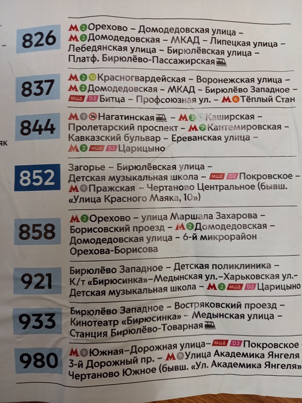 Теперь это 826 . Пассажирка - Бирюлёвская - Лебедянская - Липецкая - МКАД - М.Домодедовская - Домодедовская ул. - М.Орехово