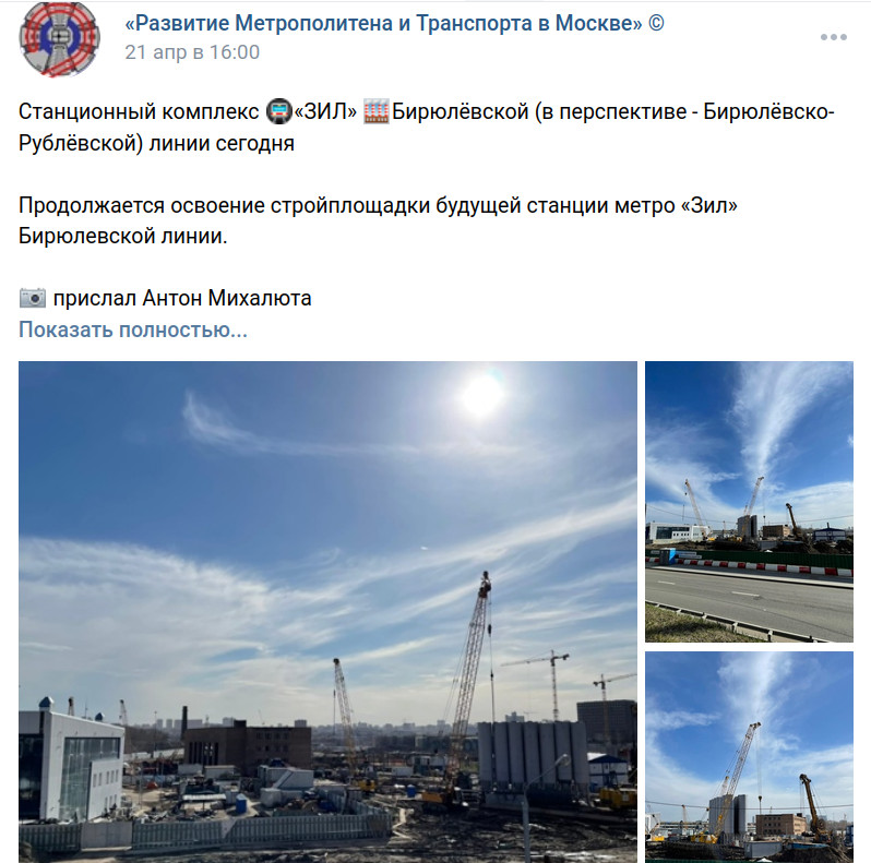 Если Бирюлевскую линию метро построят только через 20 лет, то почему уже сейчас продолжается освоение стройплощадки будущей станции метро «Зил» этой линии? (см.: https://vk.com/wall-150643822?q=%23%D0% ... 0%B8%D1%8F ).