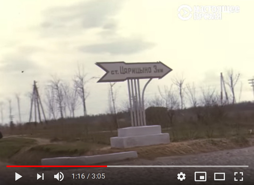 Вероятно эта дорога, по которой в начале едет оператор, в будущем превратится в Каширское шоссе, а перед поворотом к станции "Царицыно" (3 км.) мы видим слева Борисовский пруд, а справа - Верхний Царицынский пруд. А знак к станции "Царицыно" (3 км.) находится на территории современного района Орехово - Борисово Северное (у этого знака находится поворот на дорогу - будущее Новоцарицынское шоссе).