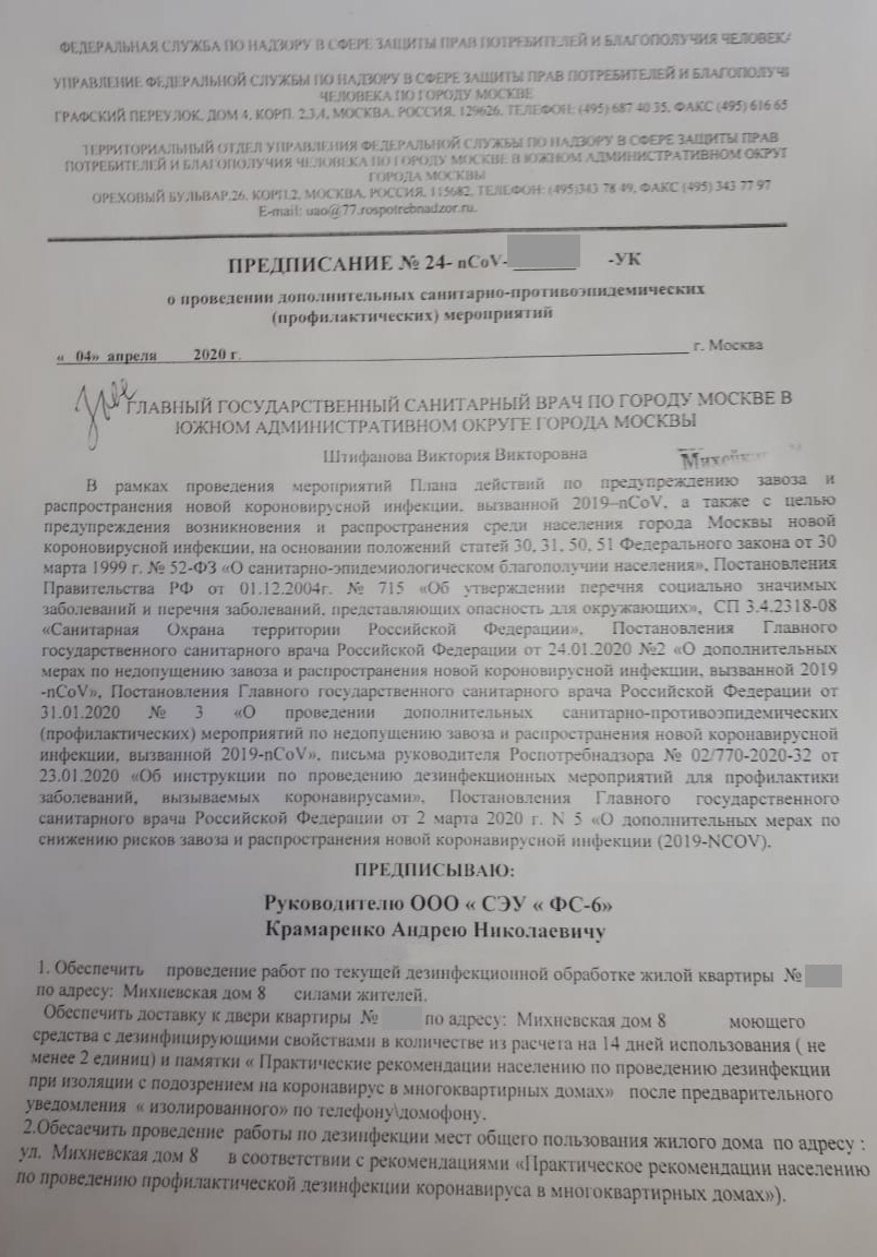 В УК от РОСПОТРЕБНАДЗОРА спускаются предписания, УК обязана их выполнять и отчитываться.