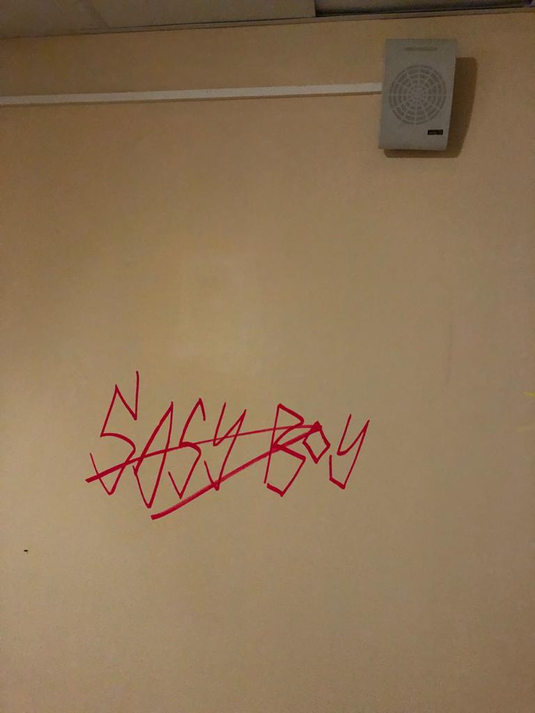 Жили мы себе жили несколько лет, никого не трогали в углу своей первой секции. И вот позавчера нас посетили юные художники. Которые выбрали местом извержения своих творческих талантов лифтовой и квартирный холлы. Я конечно не профессиональный графолог, но и так понятно, что дрожащая рука "мастера" довольно юна и не окрепла. Конечно никаких камер у нас нет, охрана хоть и есть, но по этажам она не ходит. При этом я исправно плачу за оную и за систему видеонаблюдения тоже. За что плачу...? Может быть на эти средства я бы мог установить собственную систему видеонаблюдения на этаже? Конечно дети сейчас ничего не боятся, у них страх отсутствует как таковой. Но возможно, лишний раз бы подумали, а стоит ли? Все-таки могут и поймать...))) Да, кстати, удовлетворившись произведенным творением, ребятишки для закрепления эффекта, вырвали с "мясом" выключатель света в мусорной камере!