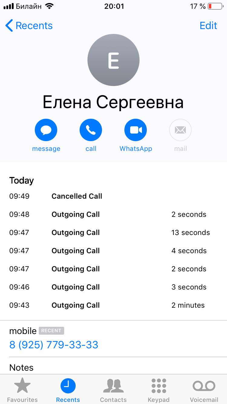 Прилагаю скрин телефона, где видно, сколько раз я пыталась дозвониться.