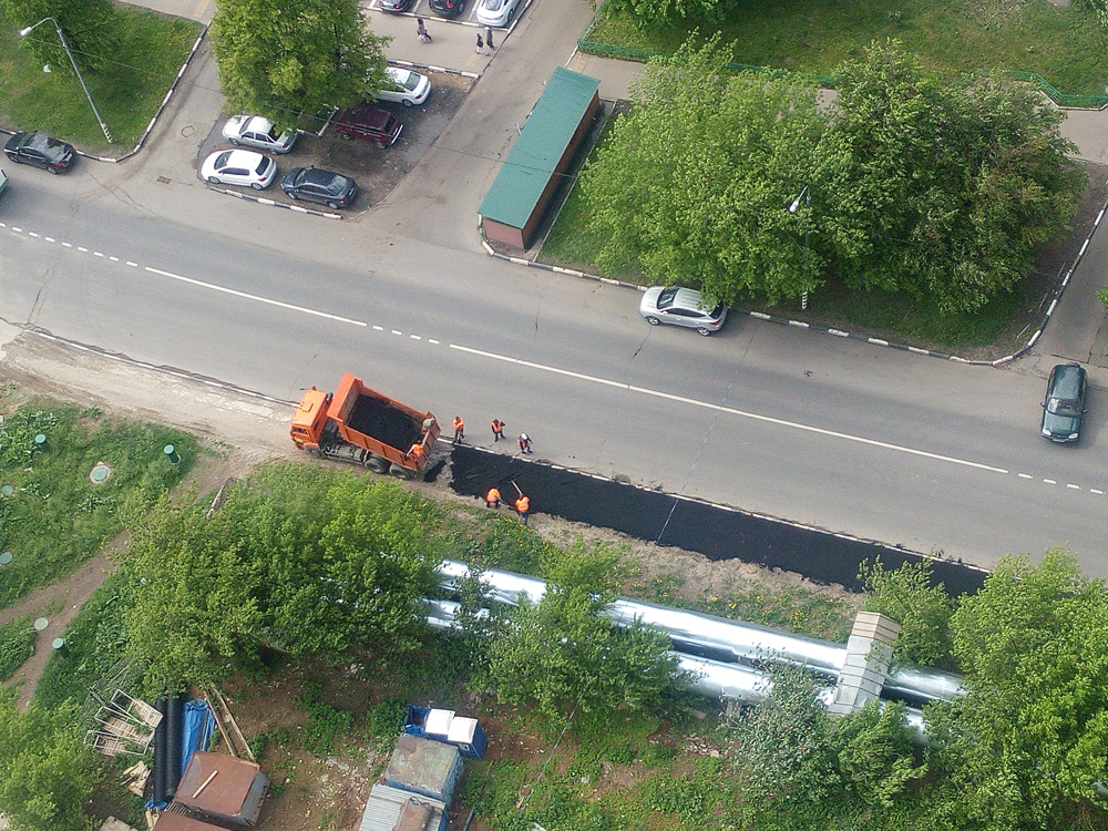 Сегодня 19 мая 2016 года, начались работы по укладке асфальтового покрытия на тротуаре вдоль трубы по Михневской улице.