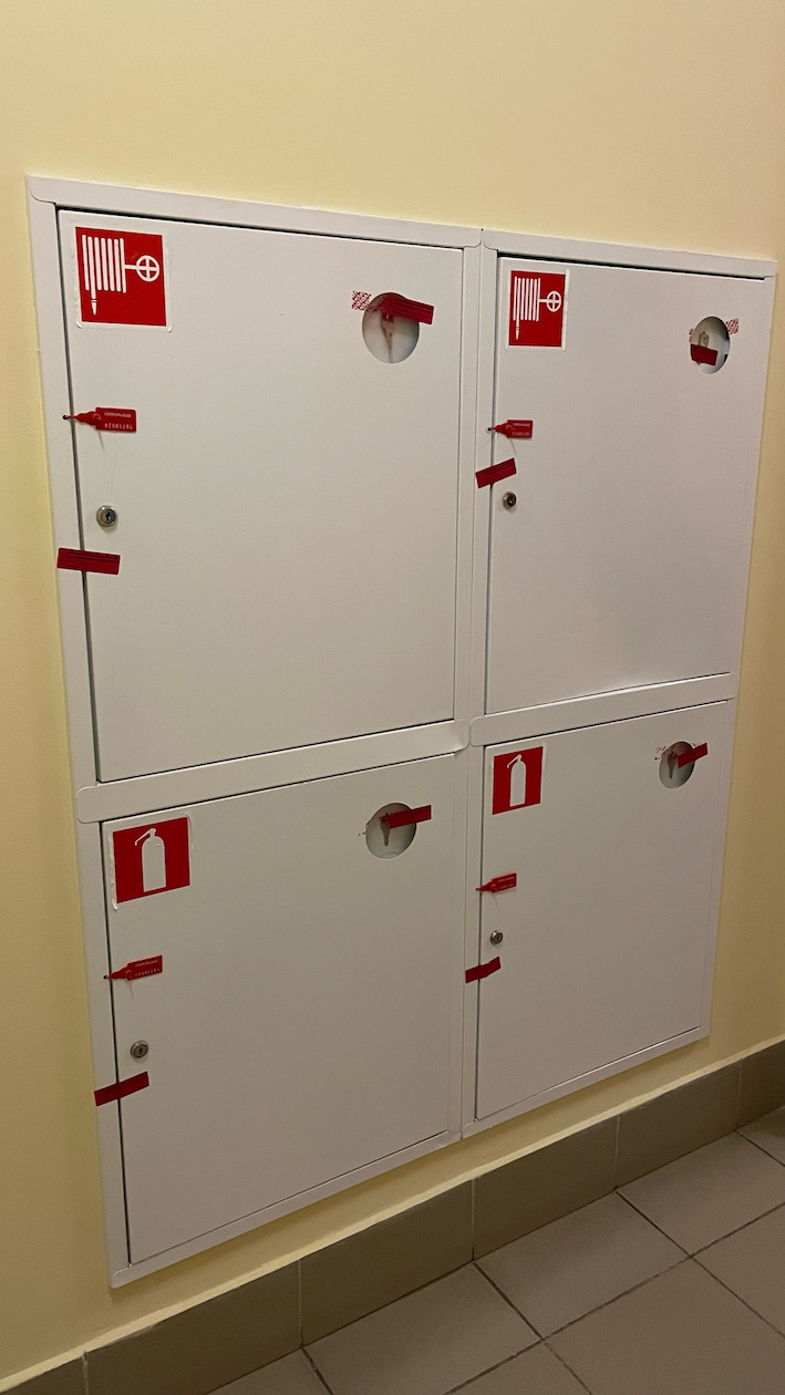Пожарные шкафы. Такая комплектация на каждом этаже всего жилого комплекса.