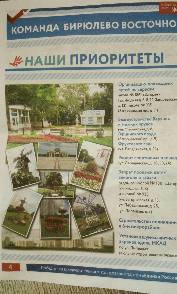 На мои вопросы в Управе районе Бирюлево Восточное почему на расстояние ближе 100 метров от школы вообще в нарушение закона продается табак и алкоголь, мне ничего толком объяснить не могли. Обещали разобраться. А теперь мы видим, что исполнение законного запрета по продаже табака/алкоголя рядом с общеобразовательным учреждением, это приоритет кандидатов от ЕР.