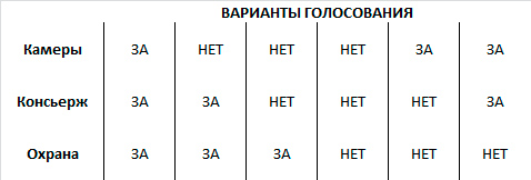 Теперь понял. В этом случае всё ещё проще. Посмотри внимательно бюллетень. Никто не мешает тебе проголосовать например "ЗА" охрану и "ПРОТИВ" камер и консьержей. Нигде не говорится о том, что ОБЯЗАТЕЛЬНО во всех "квадратах" ставить "ЗА". Голосуй так как считаешь нужным. Я например ПРОТИВ колясочных, несмотря на то, что у самого коляска и не одна. Я ПРОТИВ консьержа, считаю что камер и охраны достаточно. Бро, у всех есть выбор где поставить "галочку". Но подчиниться придётся большинству голосов.