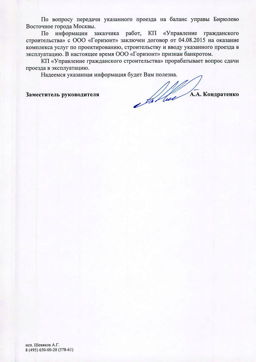 2. По вопросу завершения Проектируемого проезда №6800 (№ 5338 по предыдущему плану района ) с целью соединения Михневской и Загорьевской улиц.