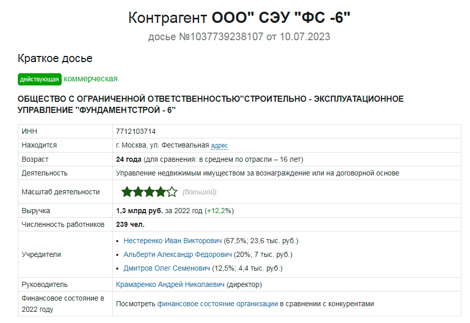 Ничего нового не увидел. УК , которая в Котельниках - у нее уставной капитал 10 млн руб. и в арбитраже с 2021 года всего 10 дел.