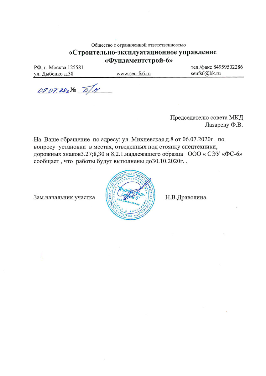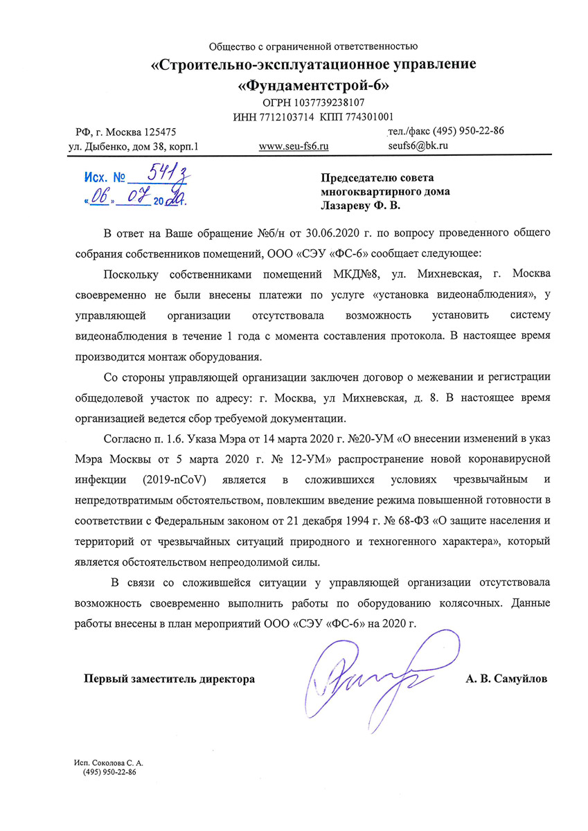Дополнительно сообщаю, что в УК отправлено обращение с просьбой оборудовать баскетбольными стойками спортивную площадку в первом дворе и обращение о закупке и высадке многолетних растений (кустарников/цветов) в осенне-весенний период 2020-2021 гг. вместо ежегодной высадки однолетников которая происходит только в середине июня.