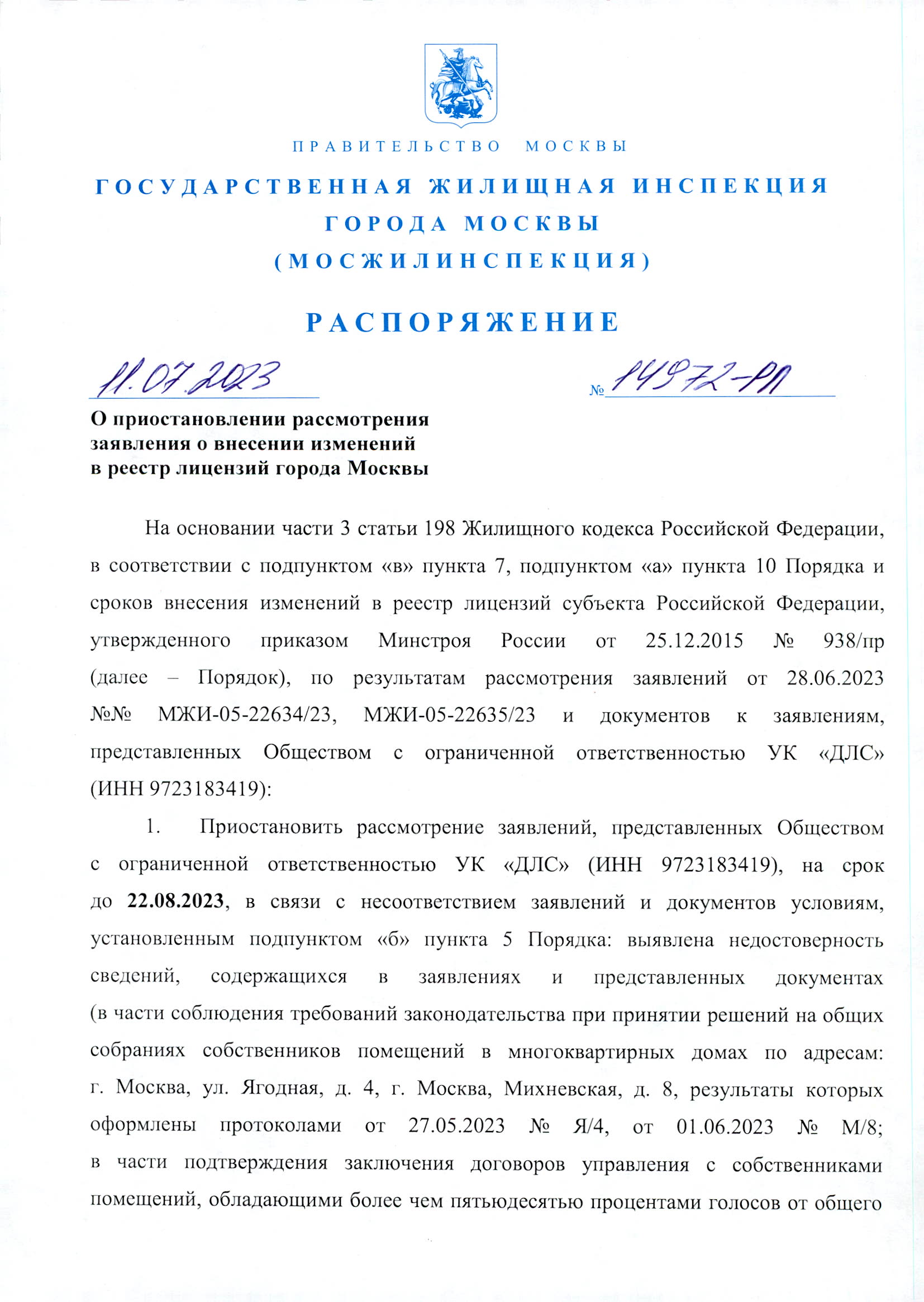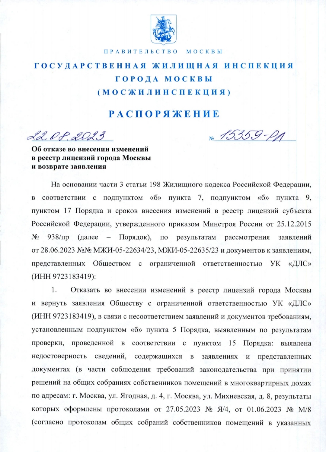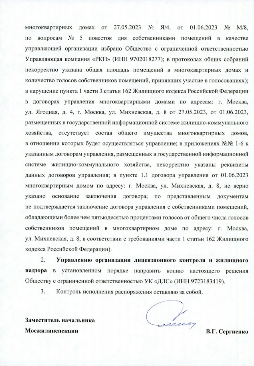 ООО УК "ДЛС" отказано в выдаче лицензии на управление нашим домом!