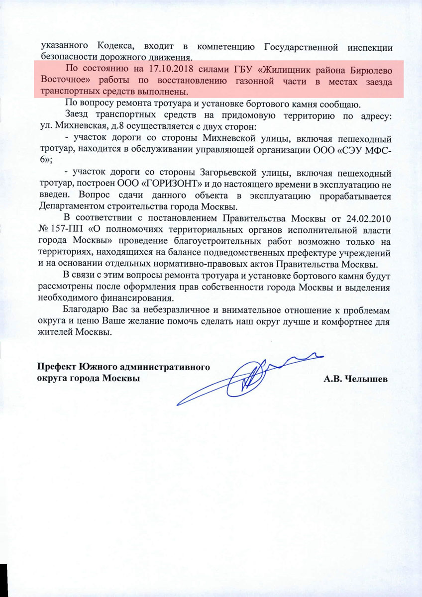 Но секундучку!!! Префектура же уже написала в этом же письме: По состоянию на 17-10-2018 работы по восстановлению газонной части уже выполнены.