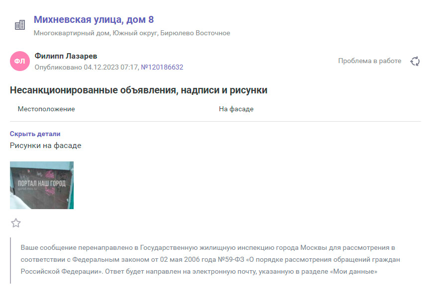 По данному факту мной было отправлено обращение в МОСЖИЛИНСПЕКЦИЮ с информацией: