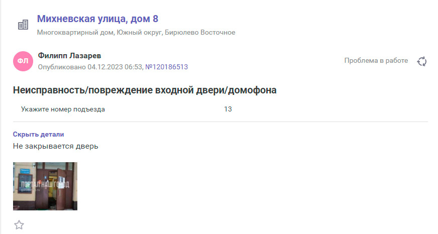 14.12.2023 в МОСЖИЛИНСПЕКЦИЮ было отправлено обращение, по вопросу управления МКД по адресу: г. Москва, ул. Михневская, д.8.