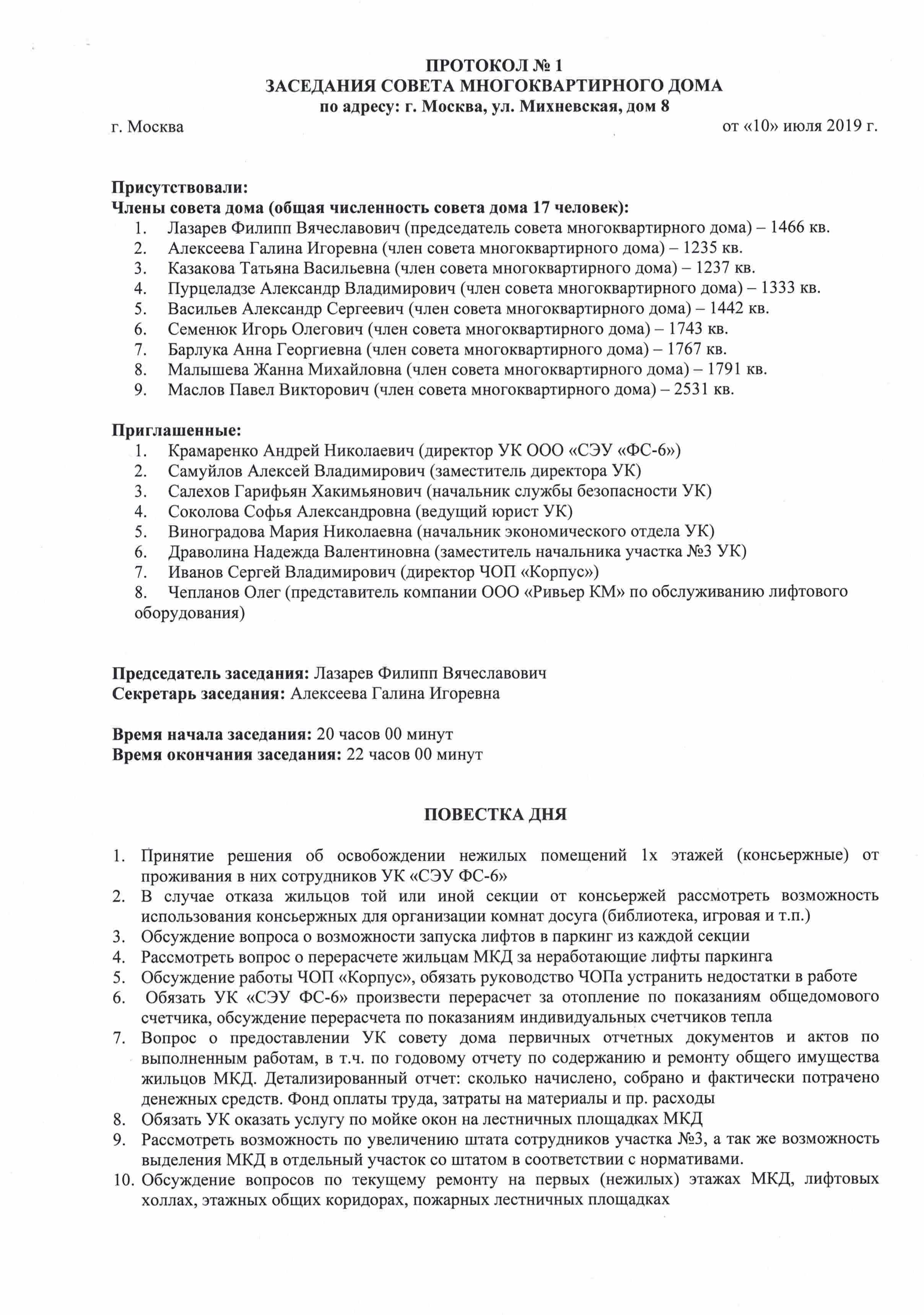 Протокол заседания совета многоквартирного дома!