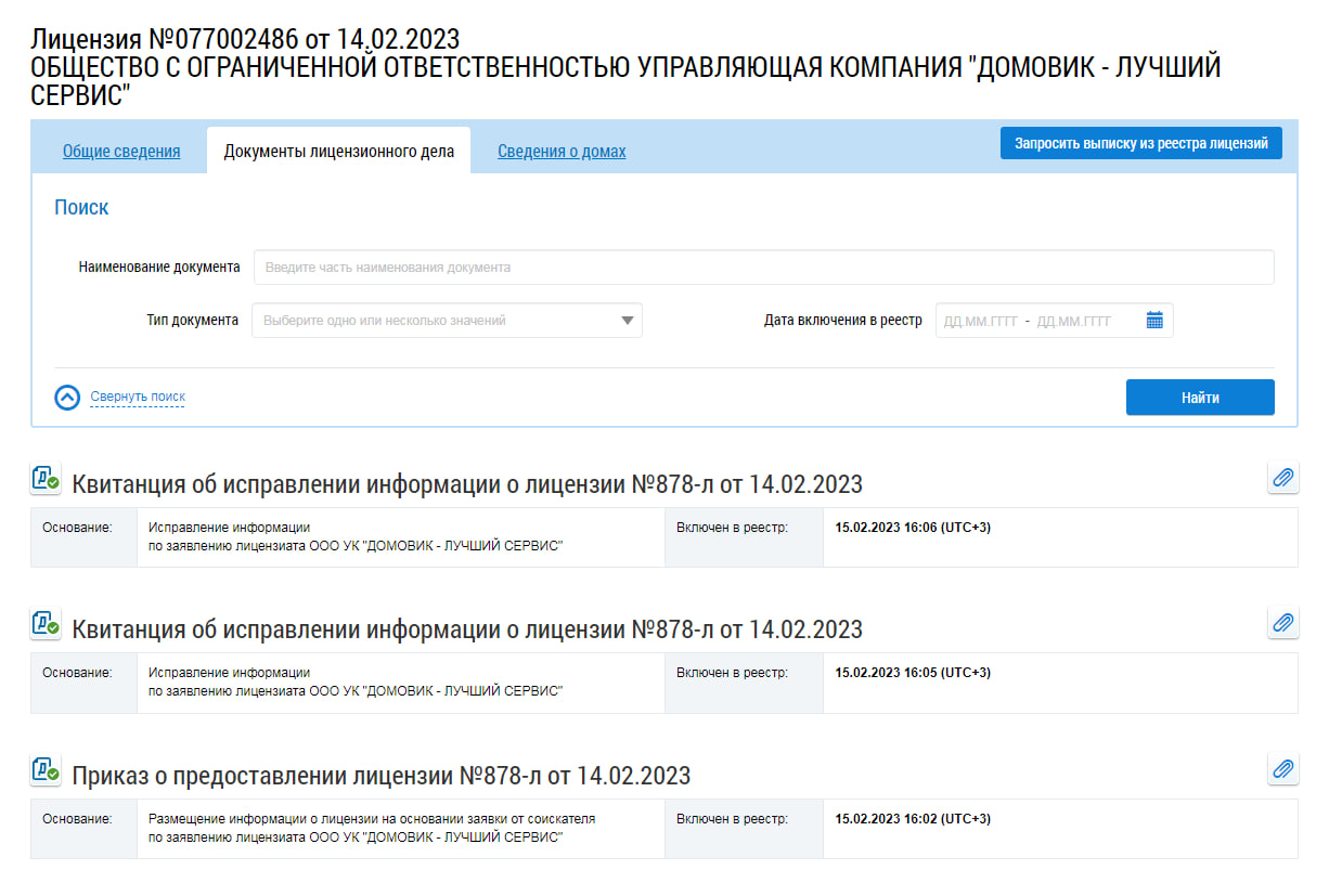 В системе ГИС ЖКХ размещена информация о том, что в нашем доме (Михневская, 8) с 18.03.23 по 01.06.23 было проведено общее собрание собственников, повестка которого - выбор новой управляющей компании ООО «УК Домовик - лучший сервис» (ОГРН 1227700908995, ИНН 9723183419) и заключение договора между собственниками и данной компанией на управление нашим домом.