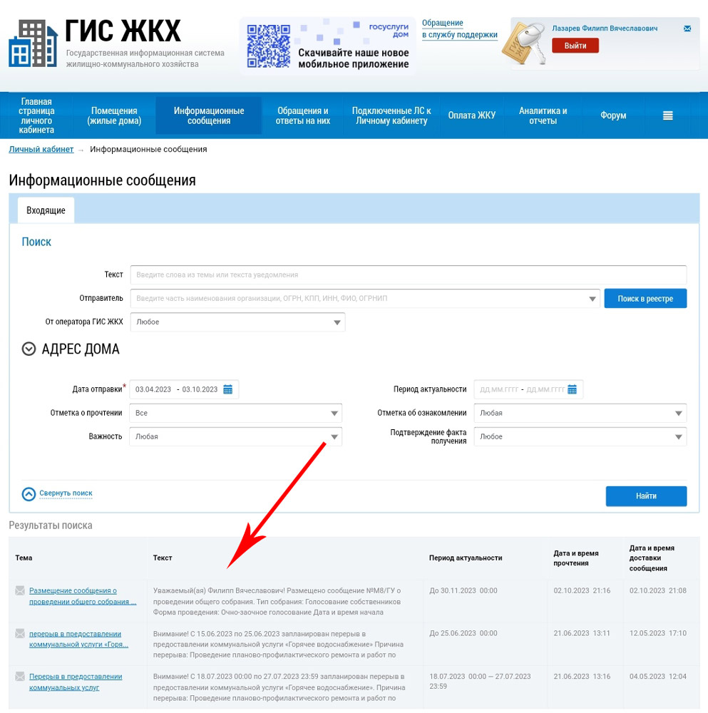 Сообщение о проведении ОСС размещено в ГИС ЖКХ (Государственная информационная система жилищно-коммунального хозяйства) 02 октября 2023 года.