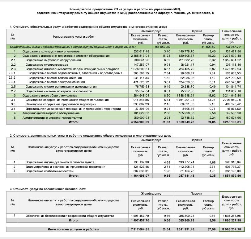 на основе квитанции УК СЭУ ФС-6 и коммерческого предложения УК ГОРОДСКИЕ УСАДЬБЫ