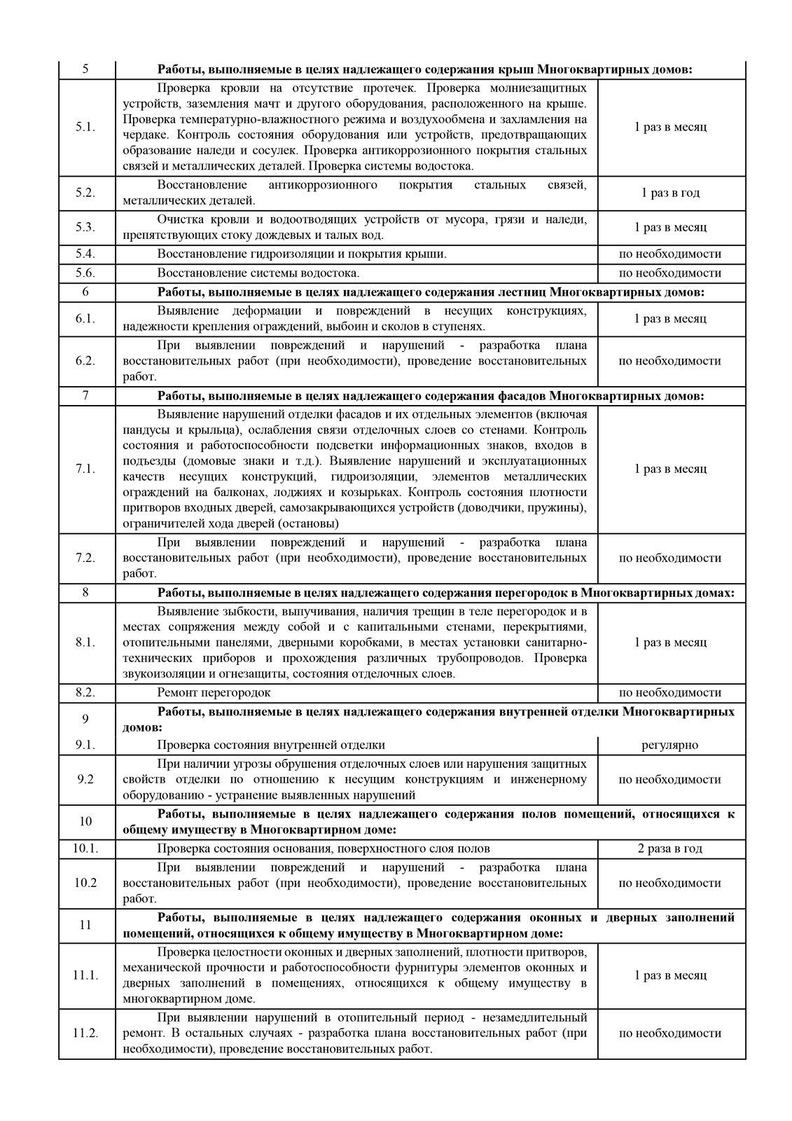 Обратите внимание на периодичность работ по этим пунктам