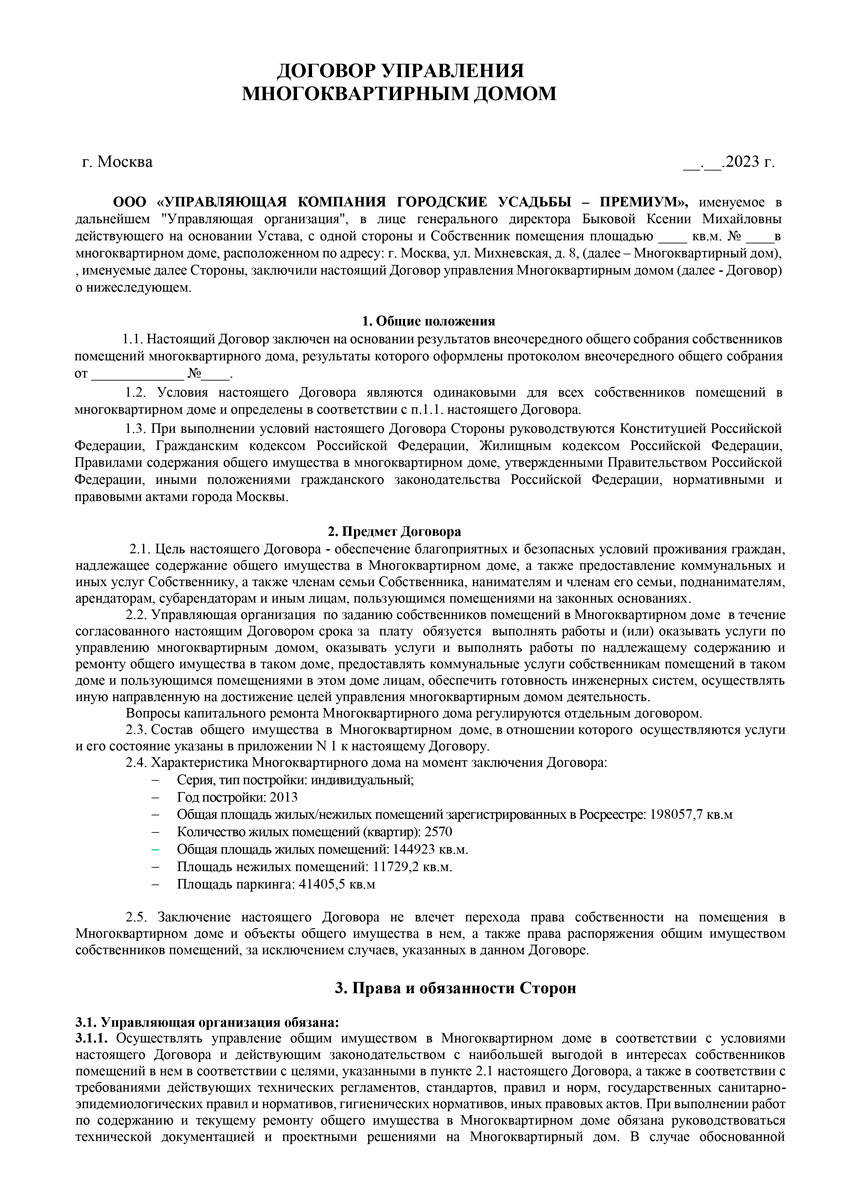 ООО «УПРАВЛЯЮЩАЯ КОМПАНИЯ ГОРОДСКИЕ УСАДЬБЫ – ПРЕМИУМ»