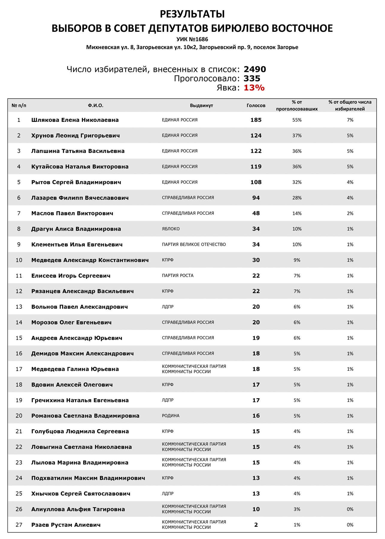 Предварительные результаты по нашему избирательному участку 1686