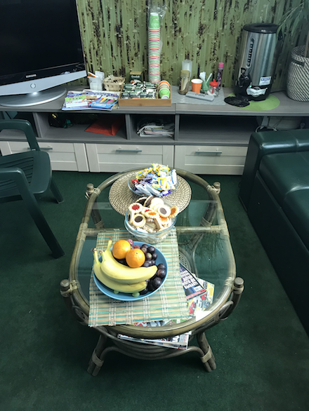 7. Ну и приятный камбек - комната отдыха с чаем, кофе, фруктами, конфетами, даже колбасой с сыром:-)