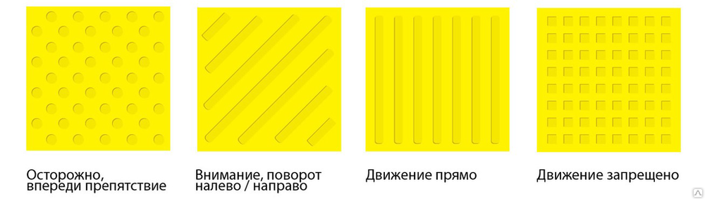 Плиточное покрытие для слепых изготавливается также, как и обычные материалы для мощения, но на ее поверхности есть небольшие сферические, конусные или линейные выступы, возвышающиеся над основной плоскостью. Их можно легко нащупать палкой, получив тем самым информацию о нужном направлении движения.