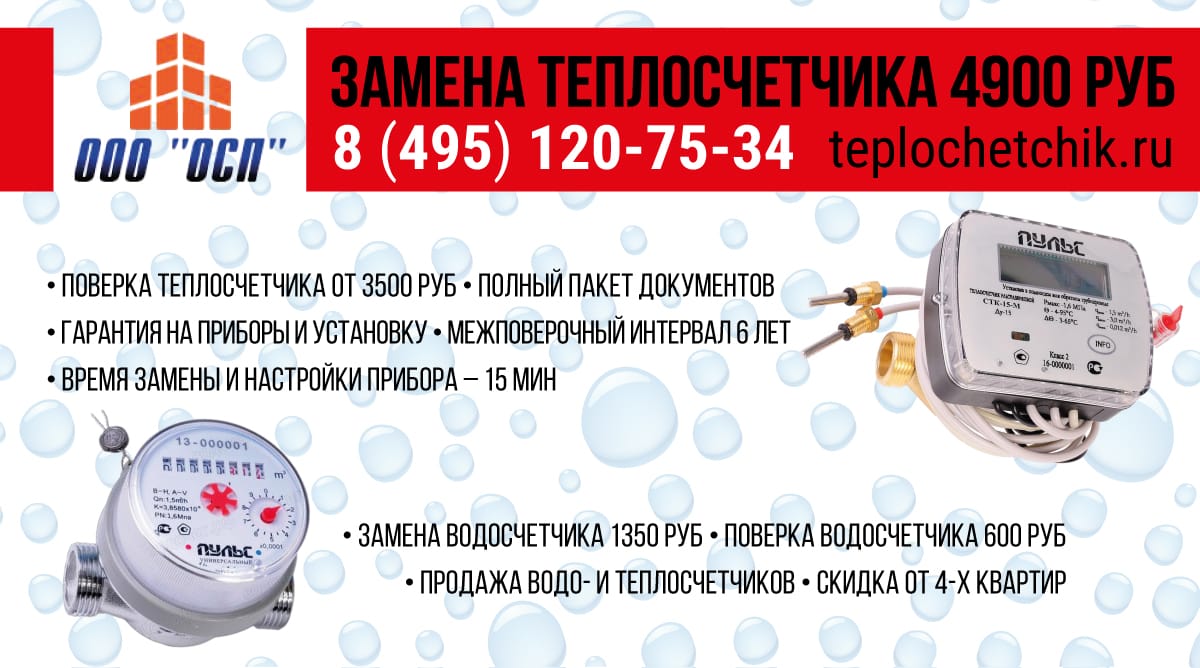 Максим писал(а):Доброго времени суток всем! Решил тоже, наконец, решить вопрос с теплосчетчиком. Ни когда не сталкивался с подобными проблемами и изучив форум понимаю, что главная проблема в исполнителе, организации, которая и произведет замену. А есть кто может посоветовать организацию, кроме той которую предлагают в объявлении ( "ТеплоПроект") Позвонил сегодня по указанному номеру, до обеда не отвечали вообще, а когда ответили, то было впечатление, что человеку трудно говорить, потому, как бежит уже от кого-то )))) Словом, как-то не внушает доверия, а насколько я понял, на этом рынке тоже мошенников хватает и можно денег лишиться, а услугу не получить качественную. Спасибо!