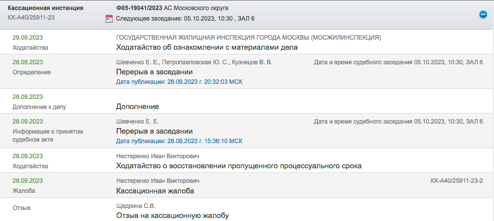 Сегодня 05 октября 2023 года состоялось заседание кассационной инстанции.