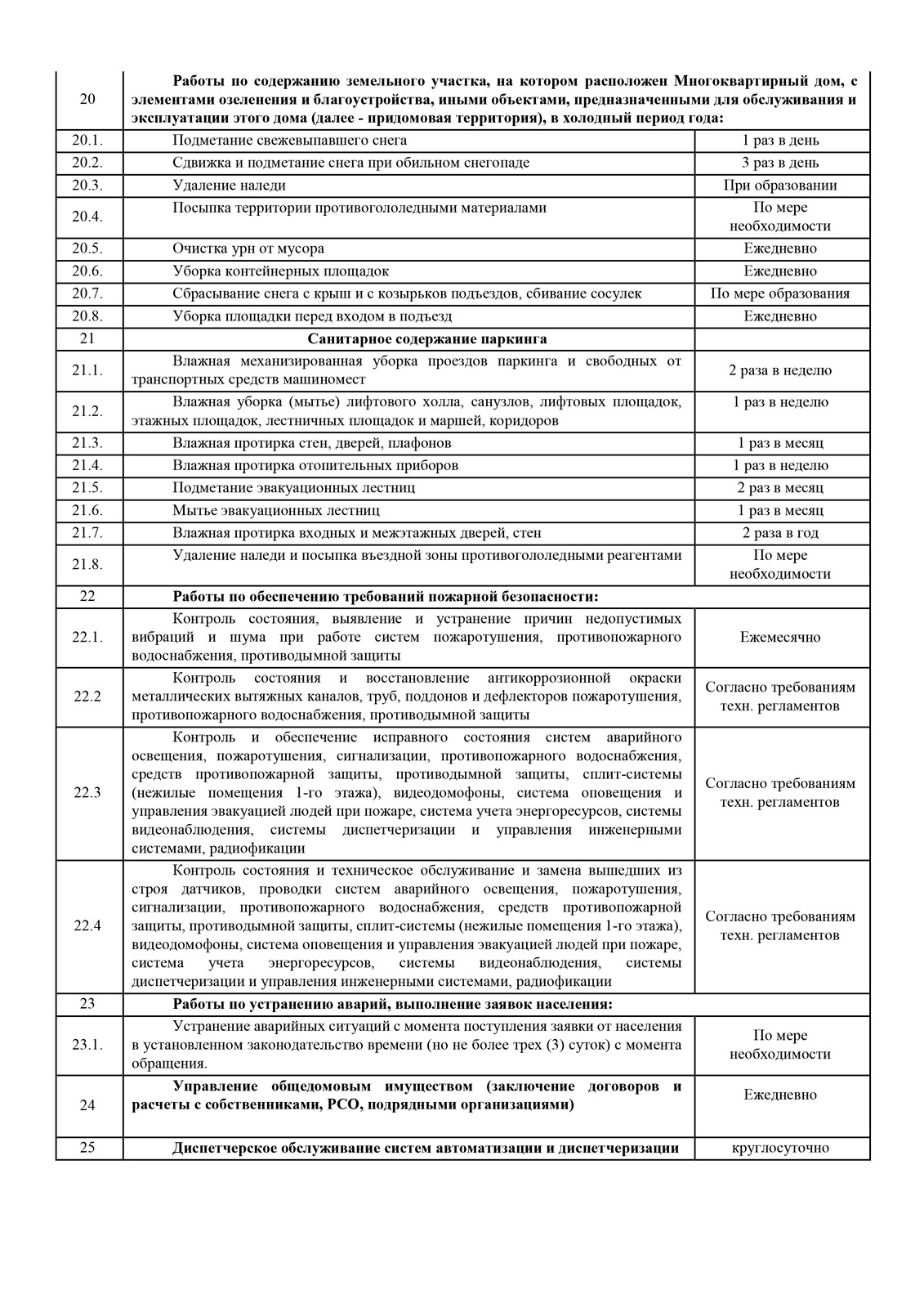 Обратите внимание на периодичность работ по этим пунктам