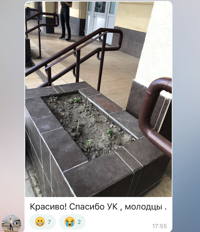 Где те кусты/цветы которые были посажены при строительстве дома и позже? За ними еще нужно было ухаживать нормально, а этого к сожалению никто качественно не делал, например зимой просто на них сваливали снег с противогололедными средствами и вместо того , чтобы каждый год дополнять зелеными насаждениями территорию, СЭУ закупало и высаживало новые цветы/кустарники за место уничтоженных и т.д.