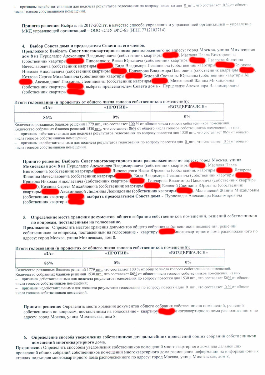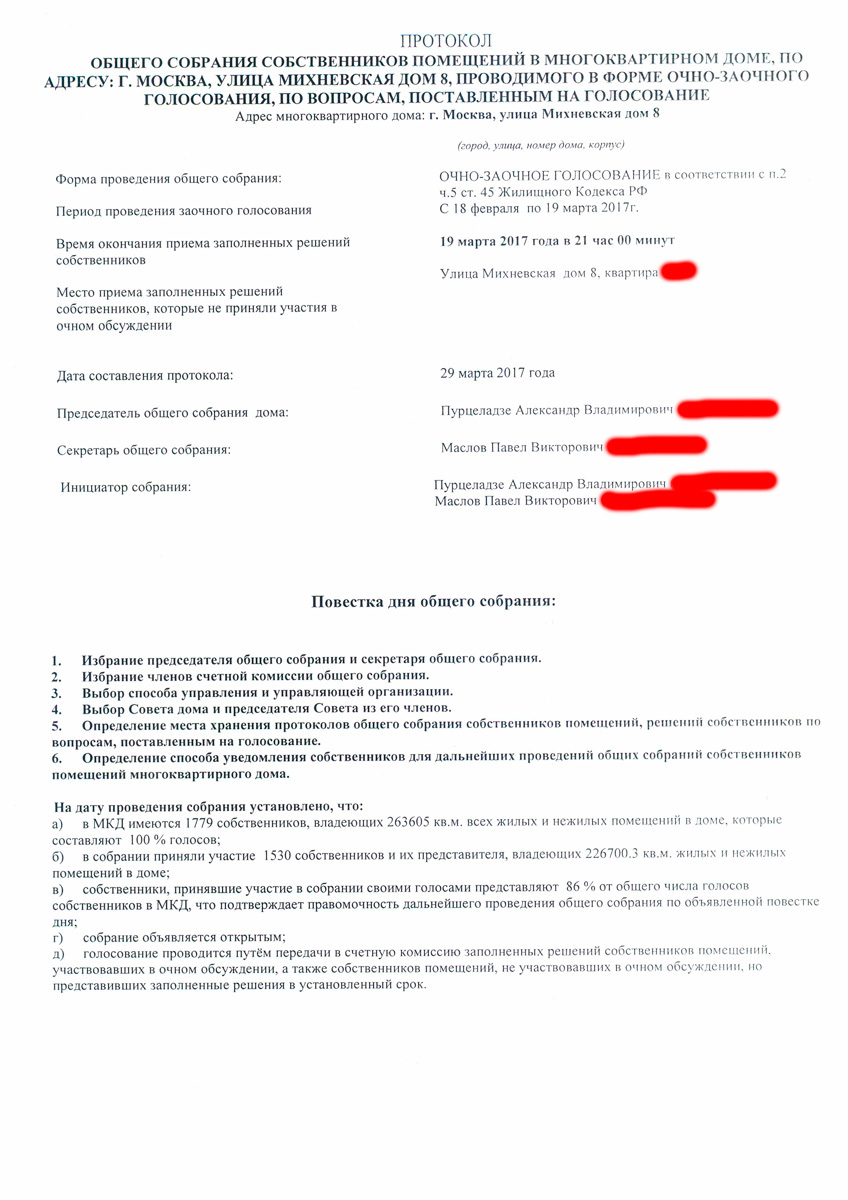 По информации полученной в полиции лица которые указаны в протоколе этого собрания также отрицают участие в этом собрании, также полиция связывалась с юристом управляющей компании и тот тоже отрицал проведение этого собрания.