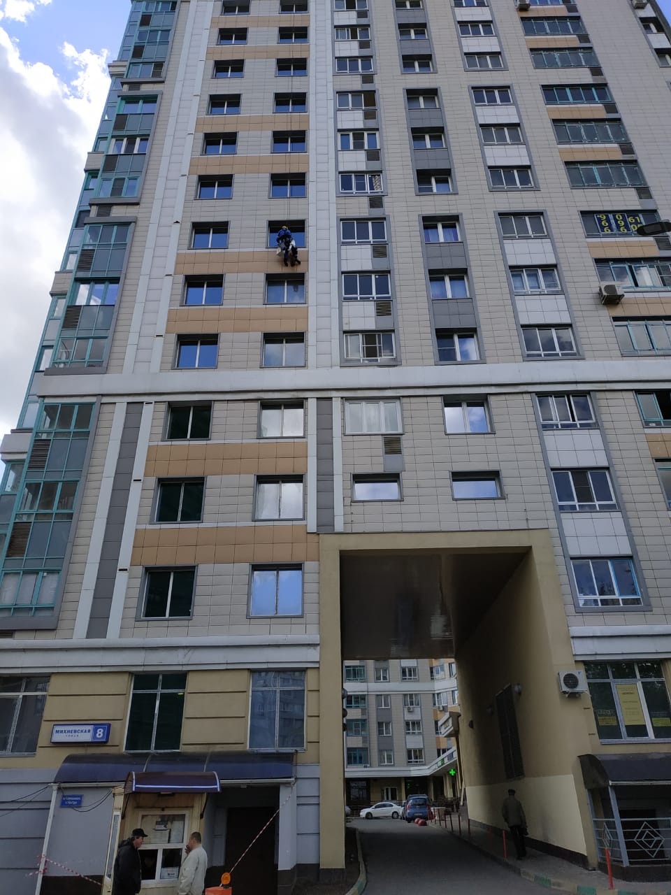 17 октября 2019 года в нашем доме начались работы по мытью окон с помощью альпинистов.
