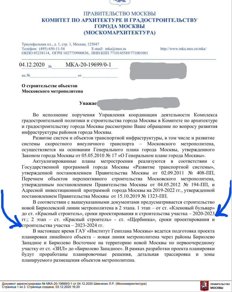 Интересные даты по срокам строительства Бирюлевской линии метро довелось получить из Москомархитектуры в ответ на свой запрос на mos.ru. Судя по этой информации, должны построить к 2023 году.