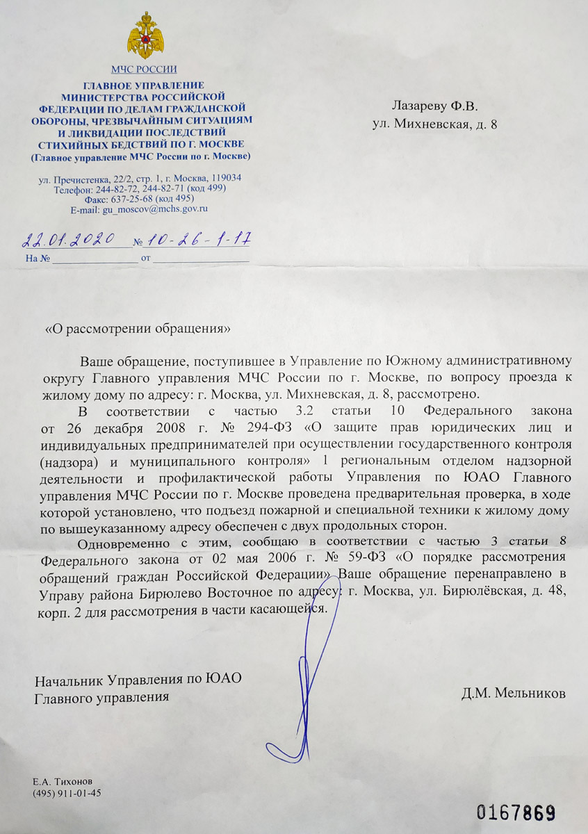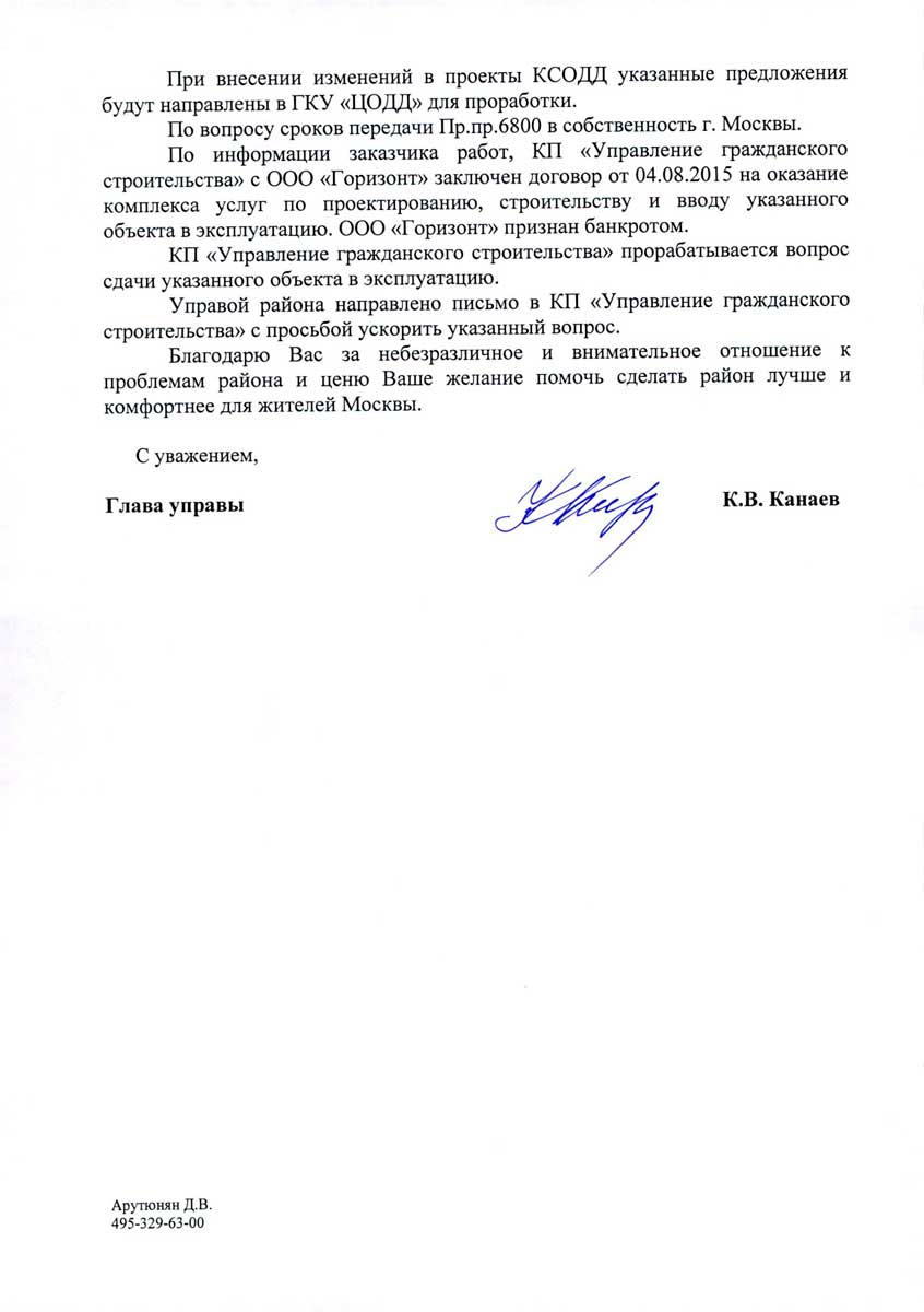 Ответ Управы Бирюлево Восточное: