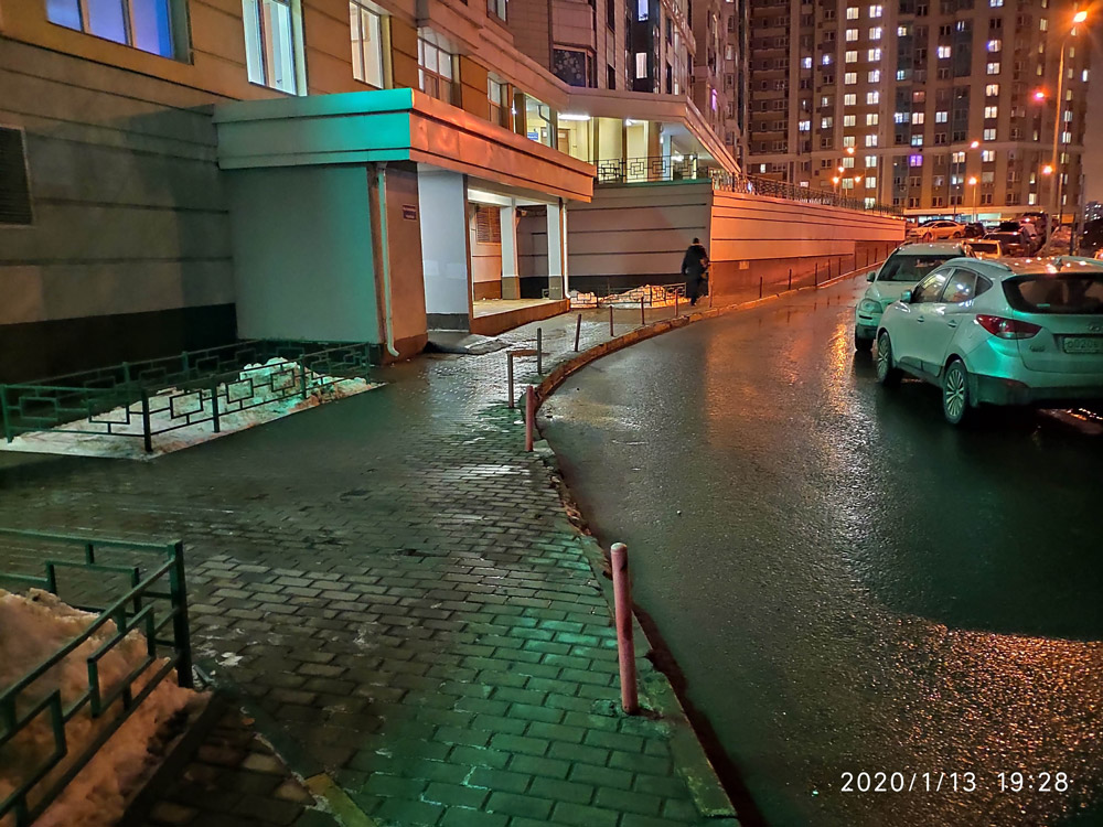 Территория дома убрана удовлетворительно, все тротуары и проезды очищены от снега.