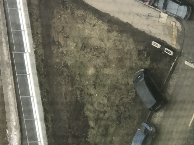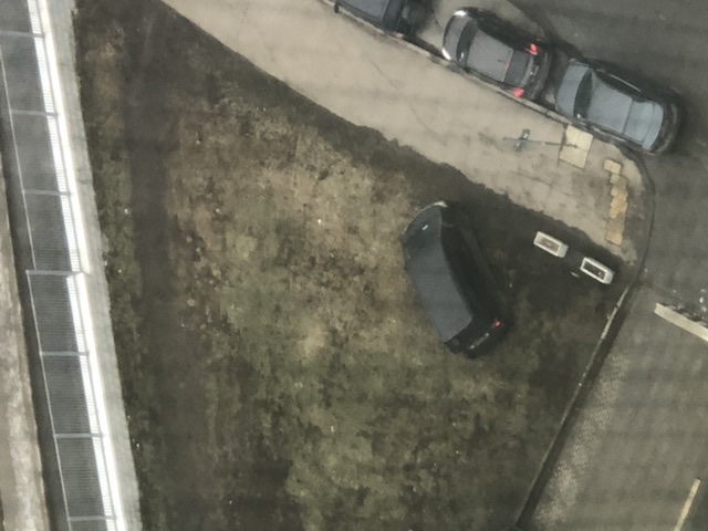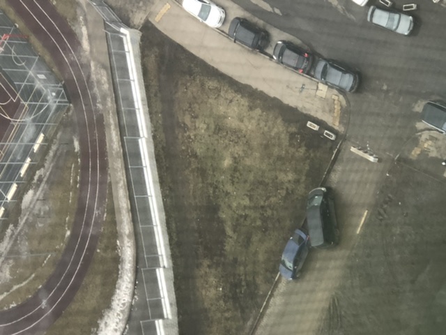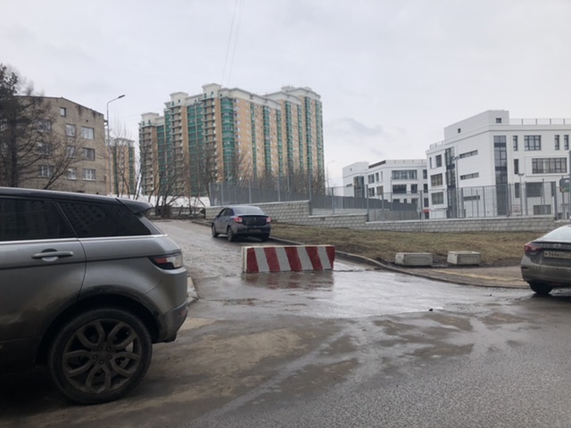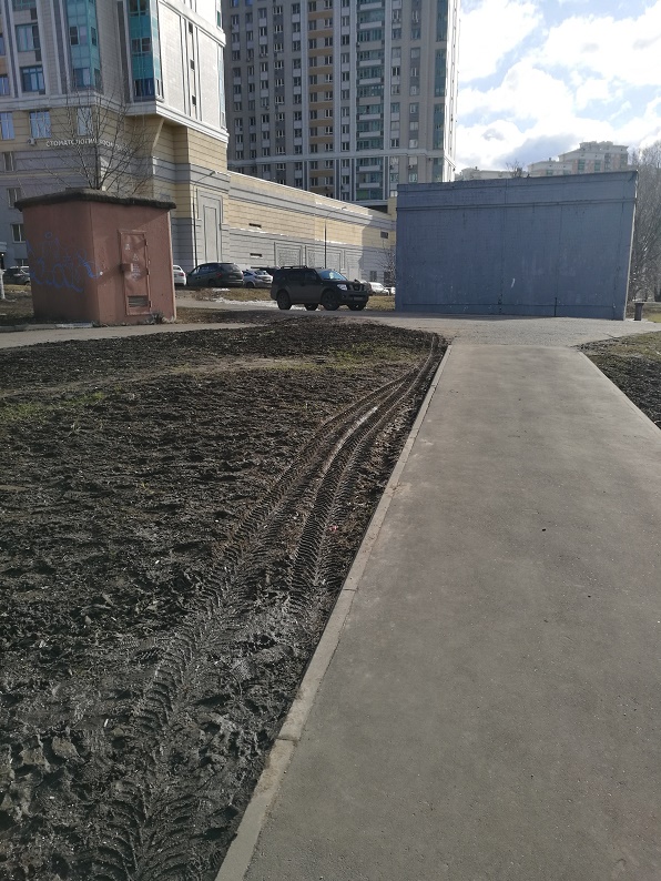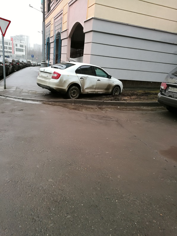 Какой-то шкодник свою "шкоду" мятую, без заднего номера поставил на газон. УК обещала перекрыть это место.