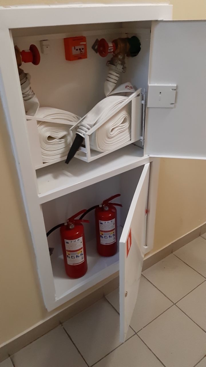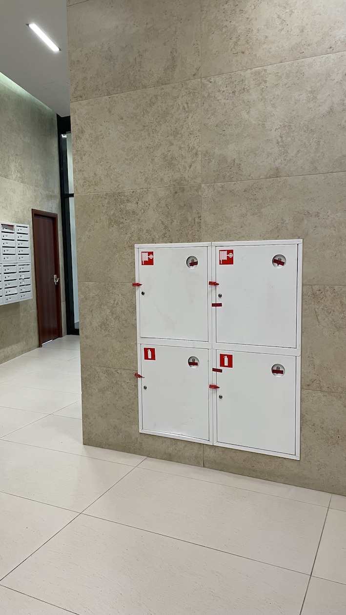 Пожарные шкафы. Такая комплектация на каждом этаже всего жилого комплекса.