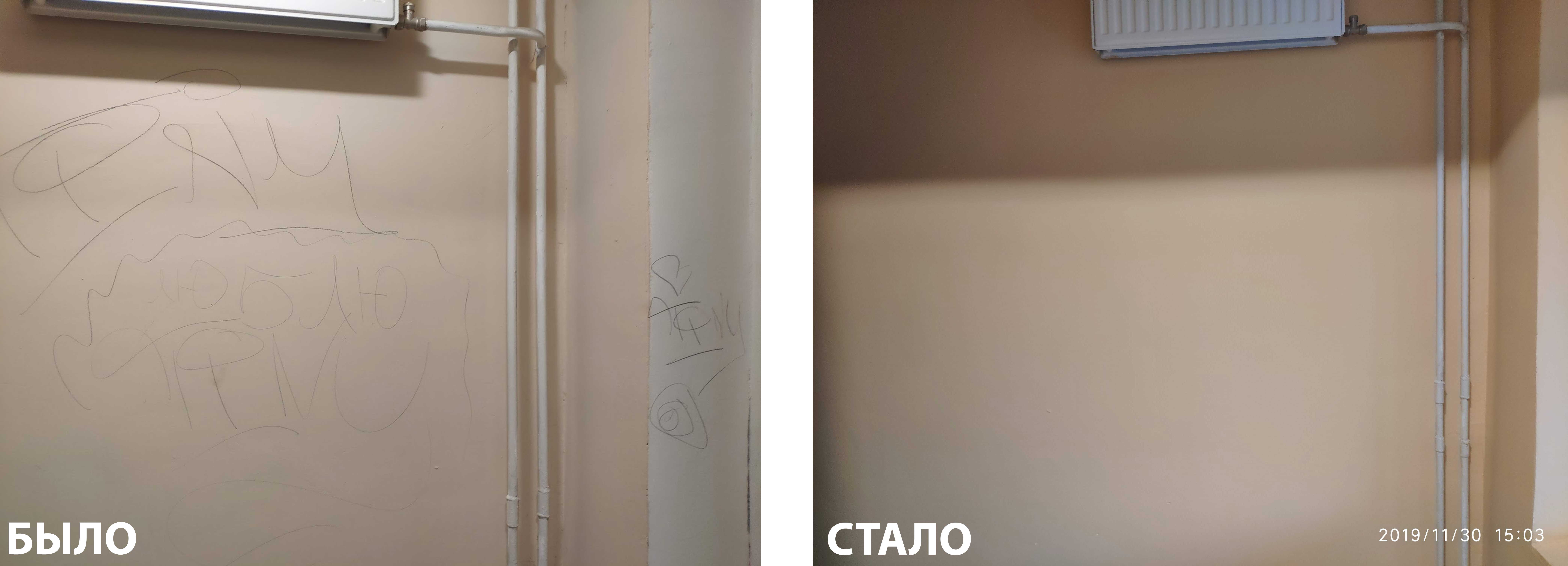Кстати жители 11 секции так и не оставили в ОДС заявок по разрисованным стенам и отвалившейся штукатурке. Месяца 4-5 прошло с того момента. Пришлось самому оставить заявку в ОДС. Результат не заставил себя ждать.