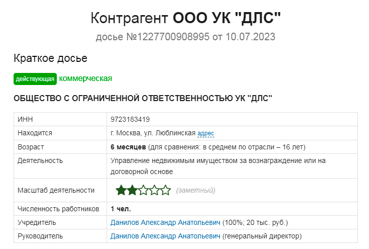 Это не так. Юрлицо, созданное меньше года назад. Без офиса. Без сотрудников. Без контактов. Не обслуживаюшее ни единого дома прежде.