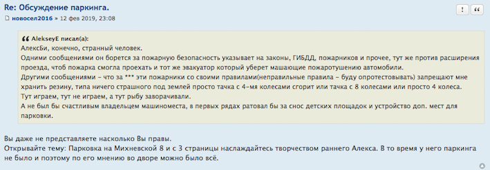 Филипп уже пытался бороться когда были пожарные учения в нашем доме, тогда пожарная машина также не смогла протиснуться внутри двора. Не будет никто эвакуировать машины внутри двора, и штрафовать тоже. Филипп неоднократно рассказывал об этой ситуации, но на пустобрехов типо алекса такие аргументы не действуют. Кстати алекс и газонщик не одно и тоже лицо?