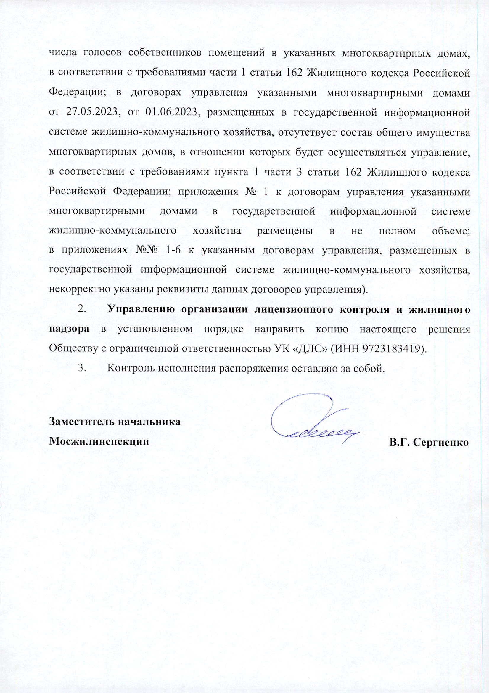 ООО УК "ДЛС" отказано в выдаче лицензии на управление нашим домом!