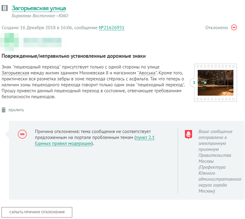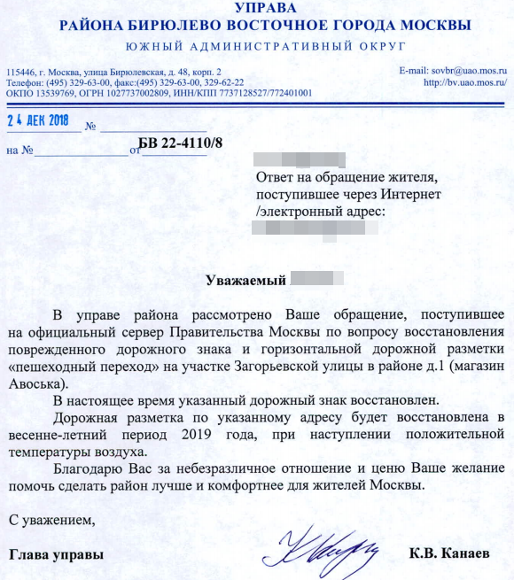 Изначально направил обращение в управу через "Мой город", но оттуда перенаправили в префектуру или ещё куда-то повыше.