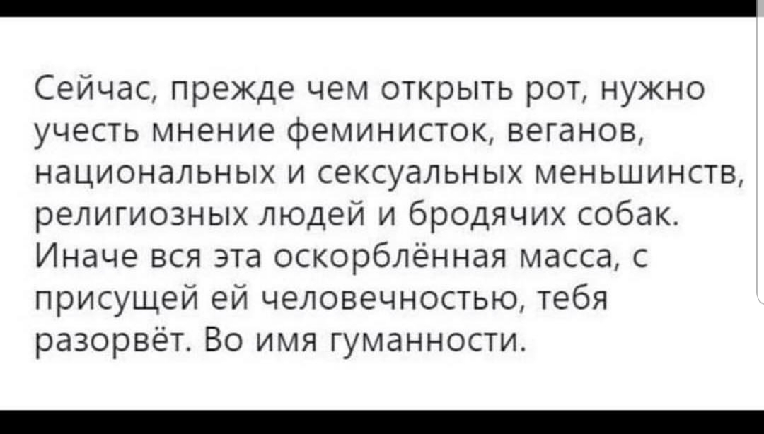 Станислав писал(а):Shadow писал(а):Станислав, cadet, a если дети криками и суетой мешаю взрослым отдыхать в тихрм парке, если их маленькие *** мешают взрослым велосипедистам и прогуливающимся взрослым? Вот вы серьезно, вы себя слышите?? Давайте все по квартирам сядем и чтоб тихо, ни звука - ведь это тоже может кому-то мешать!!