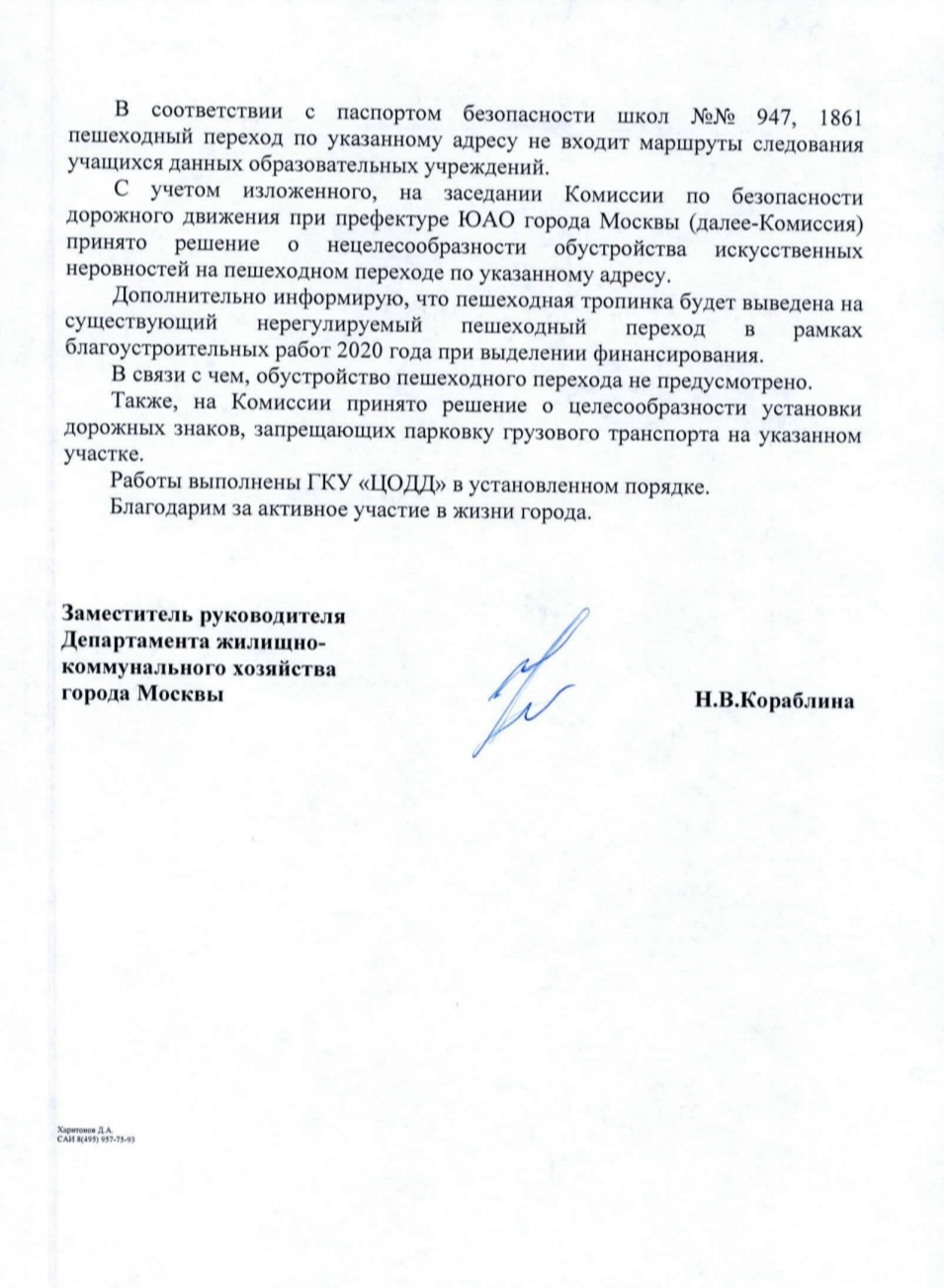 Получен ответ из Департамента Жилищно-Коммунального хозяйства г. Москва.