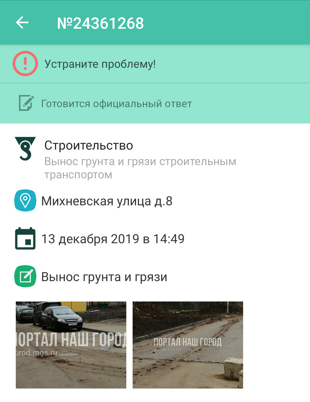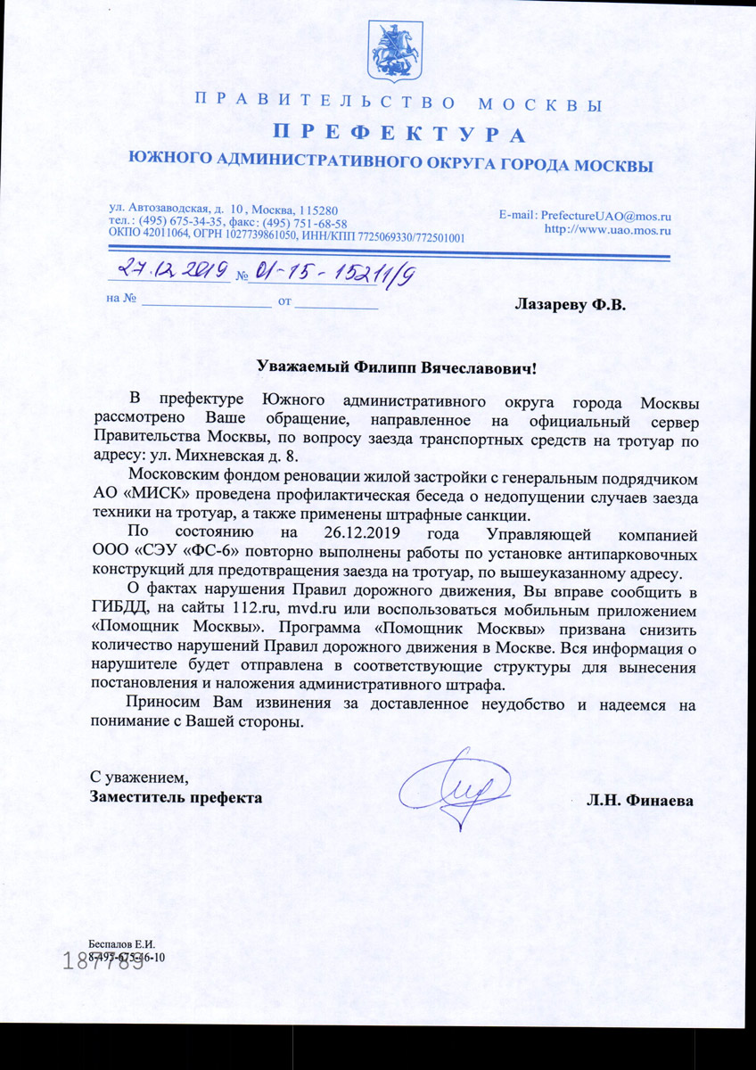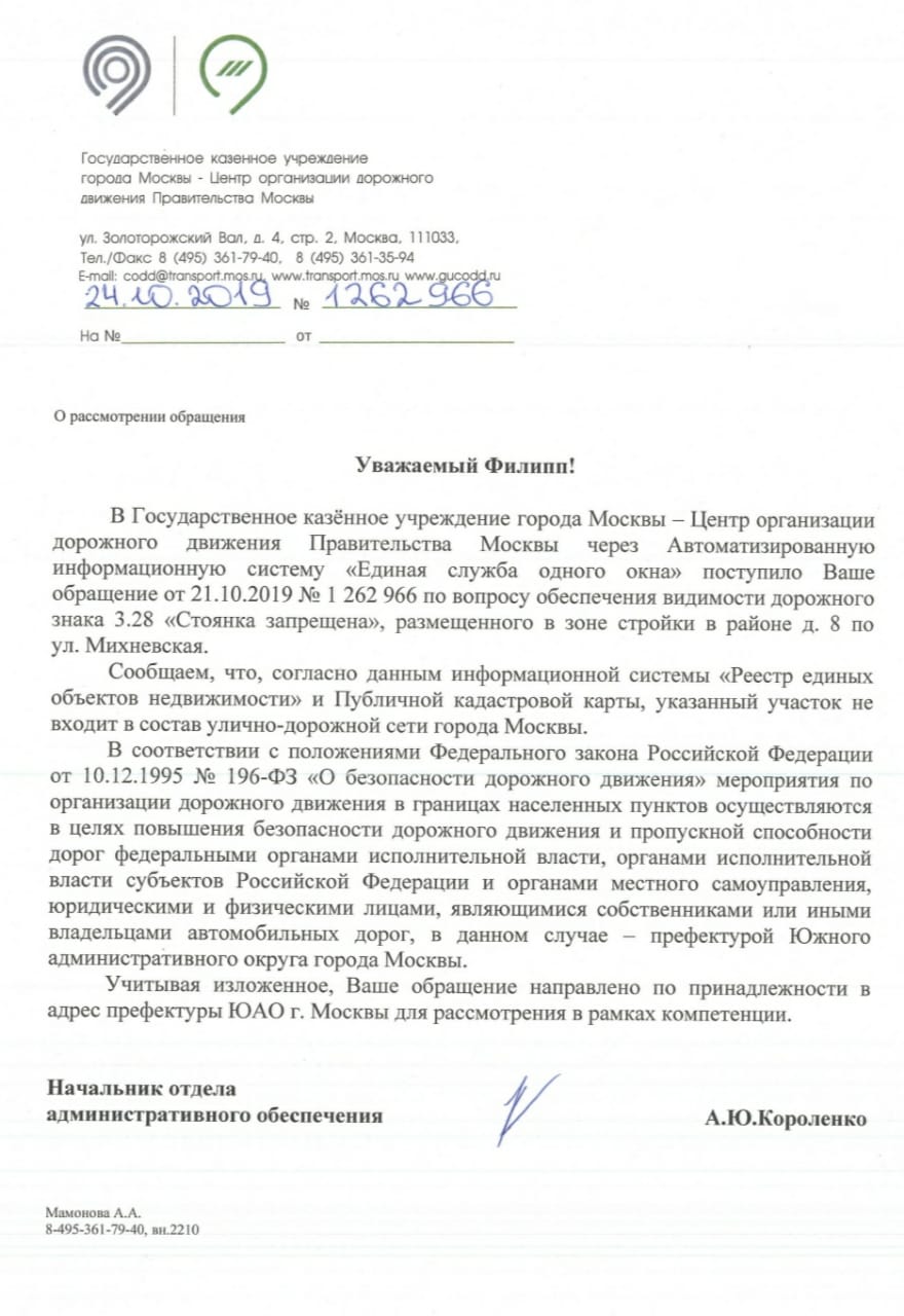 Только недавно (09 декабря 2019 года) пришел ответ из Префектуры, что все восстановлено и вот опять(