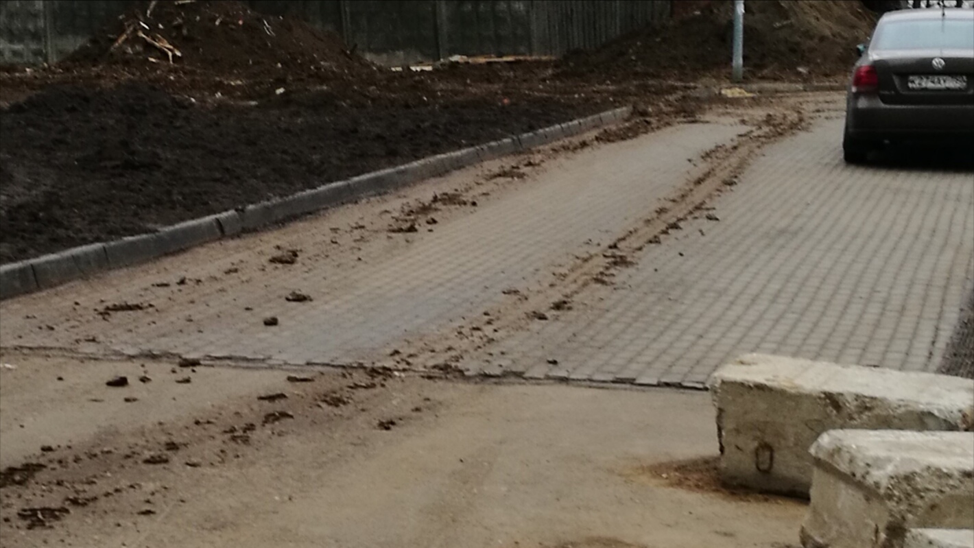 Вчера грязь развезли, а сегодня её в асфальт закатали.
