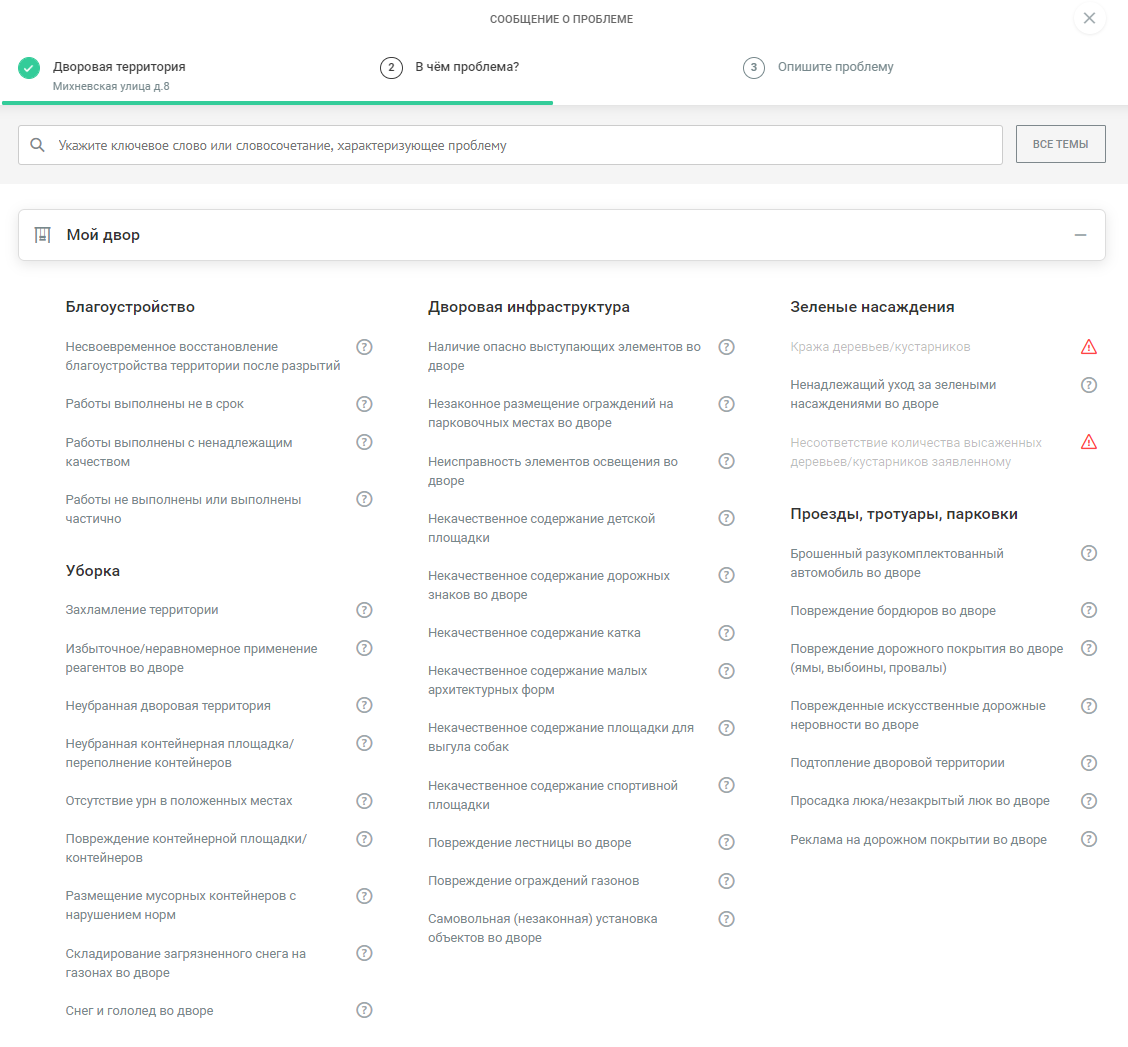 Много тем в разделах "Мой двор" и "Мой дом", в том числе неубранная дворовая территория.