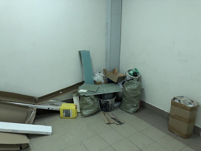 По фото видно, что это явно строительный мусор, сталобыть это рабочие намусорили, а не жильцы.